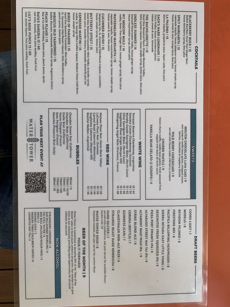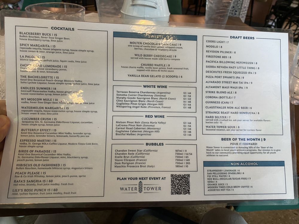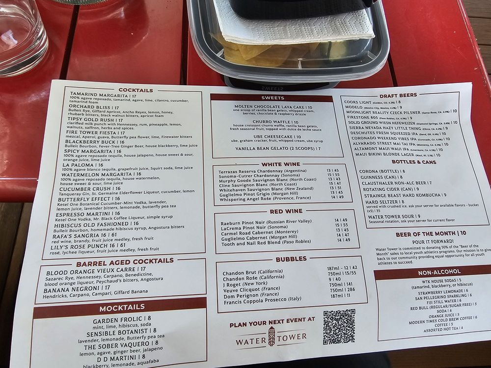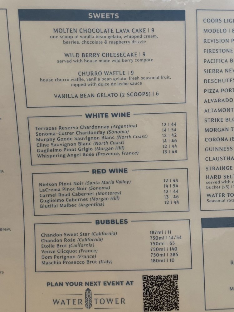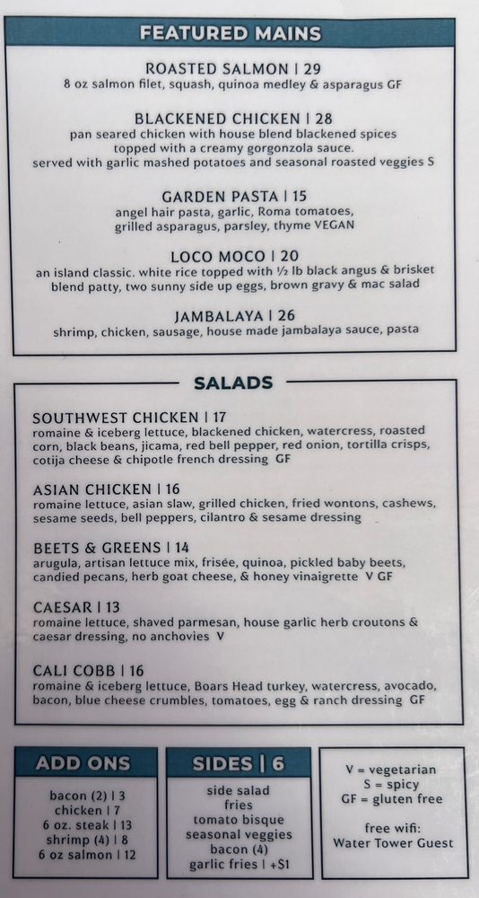Water Tower Kitchen in Campbell, CA offers a diverse menu with options for everyone. The restaurant is vegan-friendly, with limited vegetarian options, and is wheelchair accessible. Customers can enjoy a range of dishes, from salads like the Southwest Chicken Salad and Asian Chicken Salad to shareables like Mexican Street Corn and Hummus. The featured mains, such as Roasted Salmon and Loco Moco, showcase the chef's skills and creativity. With a full bar, happy hour, and outdoor seating, Water Tower Kitchen is a great spot for various occasions, whether it's a casual dinner, a night out with friends, or a special date. The positive reviews from customers highlight the delicious food, attentive service, and trendy atmosphere, making this restaurant a must-visit in the area for both locals and visitors.